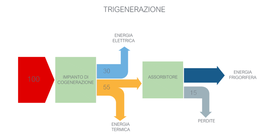 Nella trigenerazione (in inglese indentificata con l’acronimo CCHP, Combined Cooling
